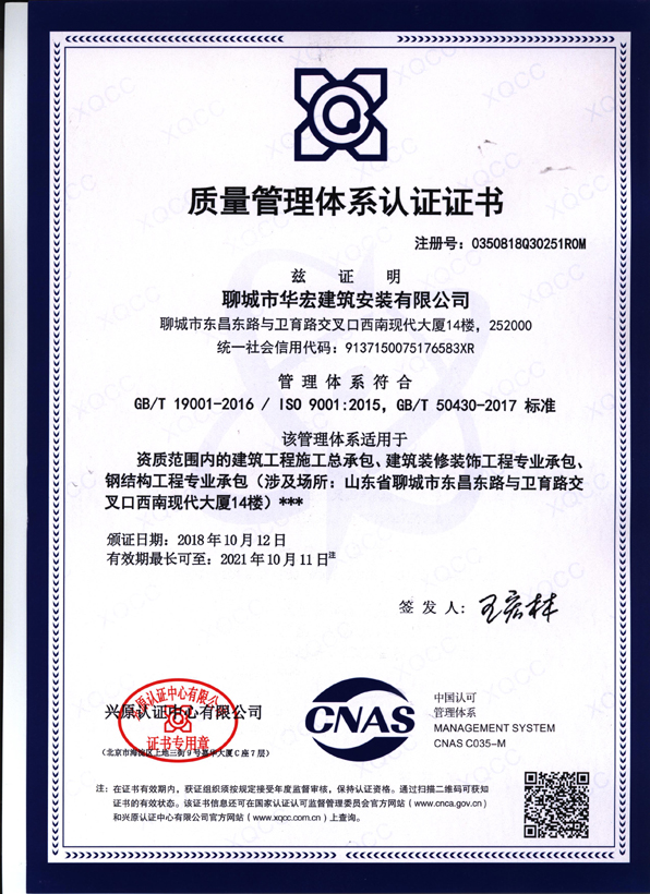 聊城市華宏建筑安裝有限公司成立于2002年5月,公司自2002年成立以來,不斷發(fā)揚 “敬業(yè)修身 打造精品 開拓創(chuàng)新 弄潮勇進”的創(chuàng)業(yè)精神,始終遵循“以質(zhì)量求生存、靠精品創(chuàng)品牌、憑信譽贏市場”的宗旨,認真奉行“科學(xué) 高效 一流”的質(zhì)量方針